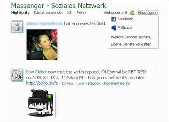 Ein übersichtliches Adressbuch sowie eine Suchfunktion für archivierte E-Mails sind in Windows Live Hotmail integriert. Über weitere angeschlossenen Dienste von Windows Live greift man beispielsweise auf den Online-Speicher Sky Drive oder auf den Windows Live Messenger zu. Verknüpfungen zu Facebook und MySpace sind ebenfalls vorgesehen.